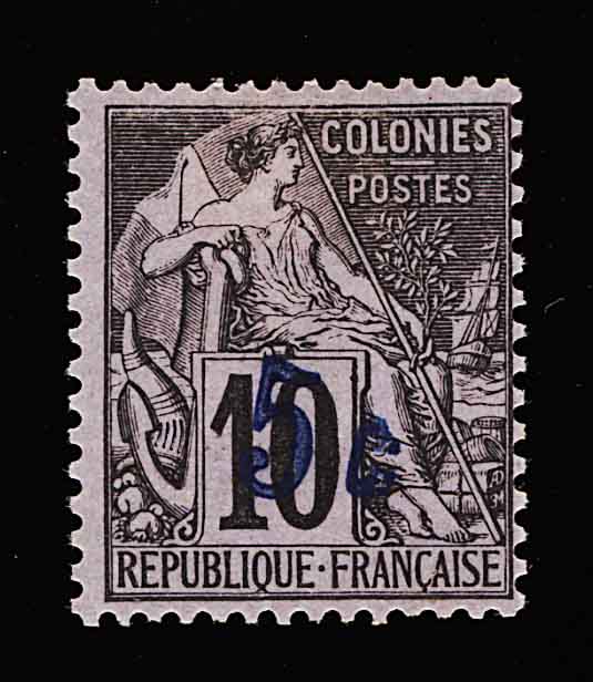 146 ng 3 image#3, 1889 "5c" Small surcharge on 10c Black on rose, unused, fresh color, fine; a very scarce stamp; signed J.F. Brun and accompanied by a 2000 Behr certificate (Yvert #3; FF 19,000). (Image) 1,750.00