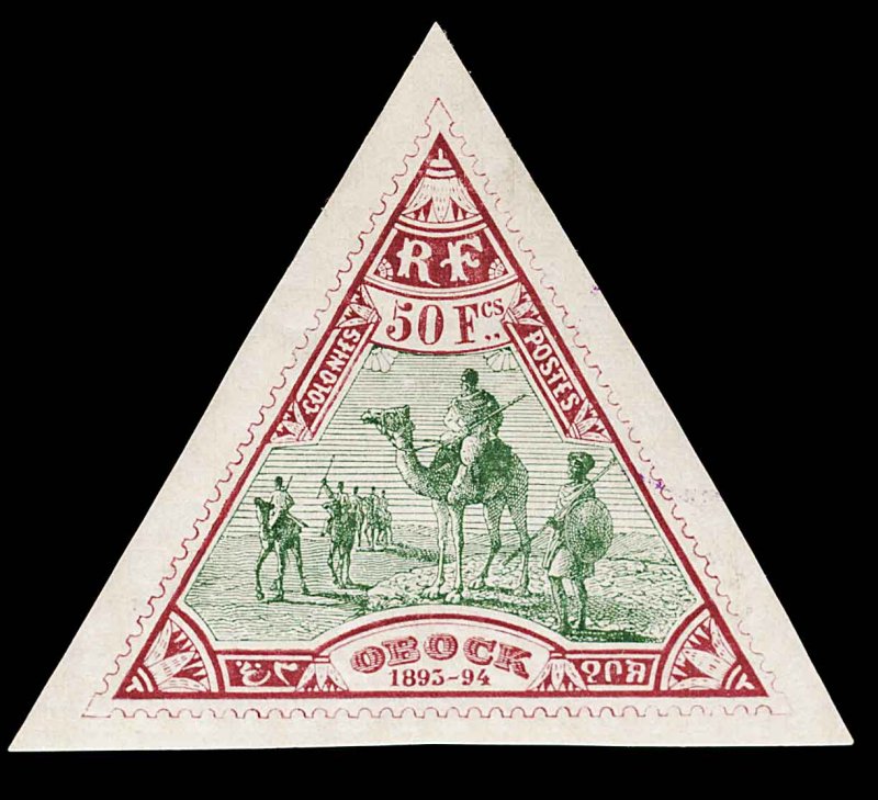 163 og J2-18 example image#J2-18, 1892 1c-5Fr Postage due, with "Obock" handstamp, each with large margins all around, all but one o.g., a few small faults, otherwise very fine; better values are signed (Yvert #T2-18; FF 14,690). (Example Image) 1,371.00