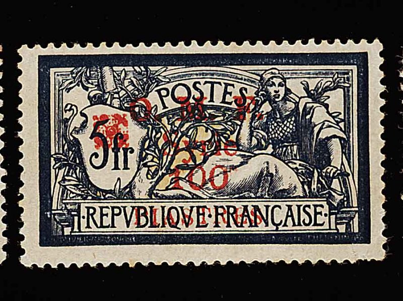 194 og 81 image#81, 1920 100P on 5Fr Dark blue and buff, with red fleuron ovpt., deep rich color, o.g., tiny flaws of little importance, very fine appearance; a very scarce stamp; clear 2000 Behr certificate (Yvert #56B; FF 12,500). (Image) 1,200.00