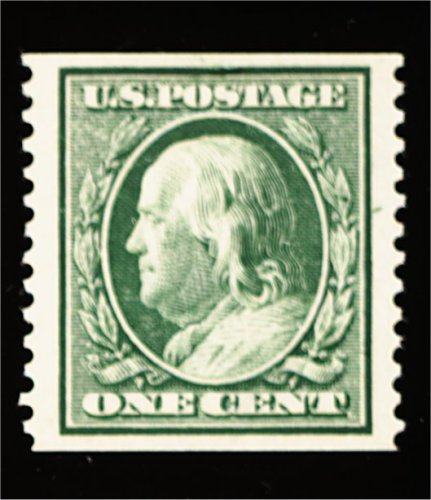 433 nh 387 image#387, 1c Green coil, perf. 12 vert., a striking mint coil single of this surprisingly elusive and terribly undercataloged stamp, possessing incredibly wide margins and being wonderfully well centered within them, rich luxuriant color, o.g., n.h., extremely fine; certified gem mint examples of this stamp are truly rare; 1993 PF certificate for a strip of three, this being the left stamp. (Image) 240.00