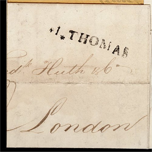 786 c imageI. Thomas straightline h.s. on 1818 (Mar. 20) entire letter (filing crease) to London, rated "2 / 2", a very fine complete strike of this scarce postal marking from the early period of the British Post Office. (Image) Est. 300-400