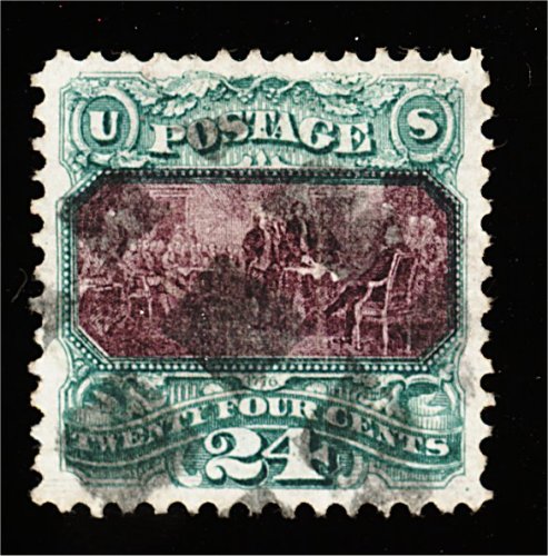 145 O 120 image#120, 24c Green and violet, exceptionally well centered amid extravagantly large margins for this stamp, warm rich colors on bright paper, very lightly and unobtrusively cancelled, extremely fine; quite scarce this choice; 2000 PF certificate. (Image) 750.00