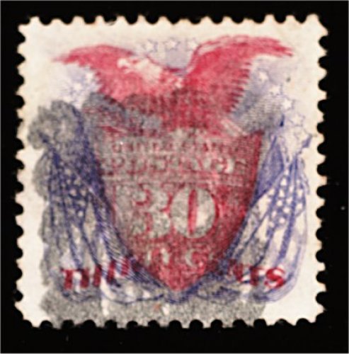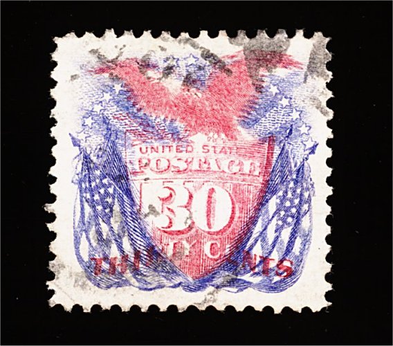150 O 121 image#121, 30c Blue and carmine, used, well centered within large well balanced margins, warm rich colors, very fine. (Image) 550.00