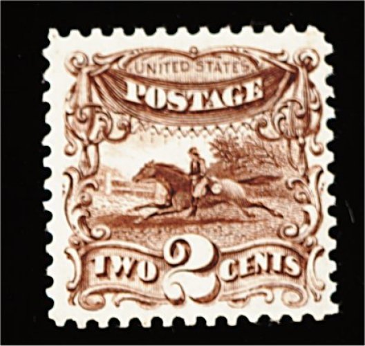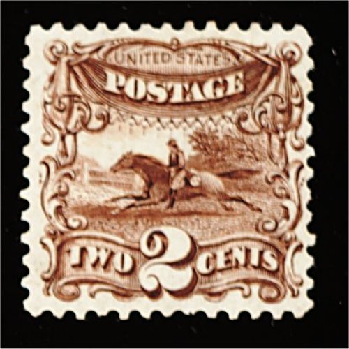 160 O 124 image#124, 2c Brown re-issue, visually striking used example, possessing margins of enormous size which are seldom associated with this value, wonderfully well centered within them, deep luxuriant color and impression on bright paper, neat strike of a duplex cancel which confirms its contemporaneous usage, an extremely fine large-margined gem; the Two Cent 1869 Pictorial re-issue is one of the most difficult values of the entire series to find in premium used condition; 2000 PF certificate. (Image) 450.00
