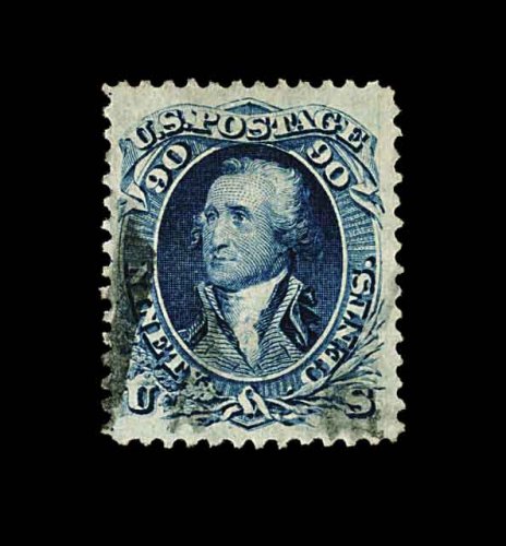 209 O 101 image#101, 90c Blue, "F" grill, gem used example, featuring outstanding physical attributes, including being extraordinarily well centered within uncharacteristically wide margins, deep luxuriant color and a crisp detailed impression on bright paper, even its perforations are uncommonly clean cut and full, unlike the characteristic rough perfs. so often associated with the Ninety Cent value, very light face-free cancel, extremely fine; a magnificent stamp that is certainly among the finest available used examples; 1991 PSE certificate. (Image) 1,400.00
