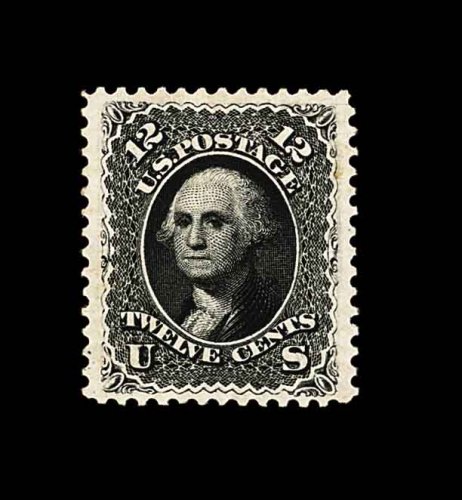 215 og 107 image#107, 12c Black re-issue, incredibly fresh and choice mint single, featuring strikingly intense color and a razor-sharp impression on bright paper, marvelously centered as well, with uncharacteristically large margins all around, full clean untoned o.g., lightly hinged, extremely fine; only 389 issued; the Twelve Cent Re-issue is the most difficult of the series to find both in premium quality and still retaining its full original gum; 1982 and 1992 PF certificates. (Image) 3,500.00