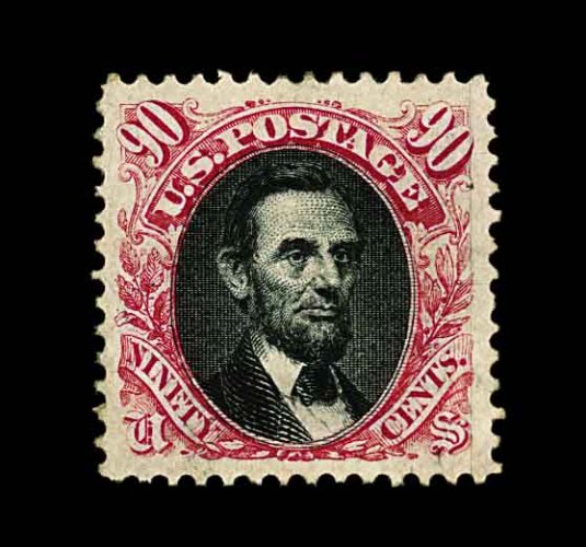 245 og 122a image#122a, 90c Carmine and black, without grill, the mint example offered here of this seldom seen rarity is, in our opinion, one of the finest quality 1869 Pictorial items in existence and certainly one of the most impressive condition rarities in all of United States philately, as this phenomenal stamp boasts the most remarkable physical characteristics one could imagine, beginning with its magnificent centering amid truly immense margins which are unheard of on the Ninety Cent value, but just as impressive are this stamp's sumptuously rich colors unlike any other we have seen, its impression is razor-sharp on bright fresh paper, nearly full o.g. (just a small amount of gum is missing from hinge removal), superb; by far the finest of the 21 certified genuine examples according to the Philatelic Foundation's records; 1983 and 1998 PF certificates. (Image) 15,000.00