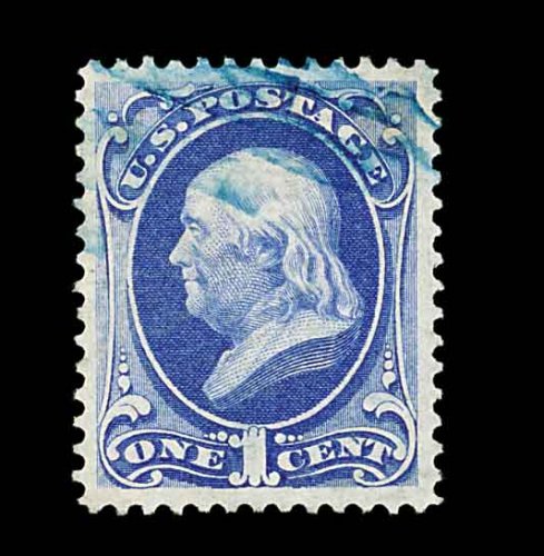 259 O 134 image#134, 1c Ultramarine with grill, uncharacteristically wide balanced margins all around, gorgeous radiantly rich color which is wonderfully complemented by a greenish blue face-free postmark at top, extremely fine; a beautiful used gem; 1988 PF certificate. (Image) 135.00