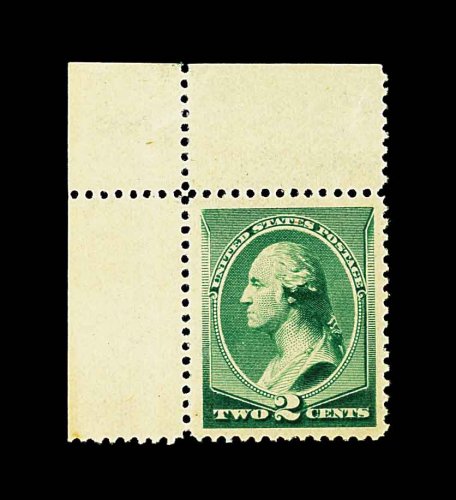 366 og 213 image#213, 2c Green, an incredibly choice top left corner sheet-margin mint single, featuring huge perfectly balanced margins all around, bright fresh color, o.g., barest trace of hinging (if at all), a superb jumbo for the perfectionist; 1989 PF certificate for a strip of four from which this stamp was taken. (Image) 50.00