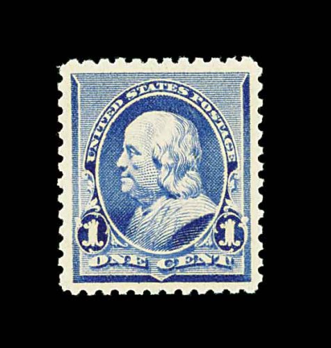 377 og 219 image#219, 1c Dull blue, mathematically precise centering amid unusually wide margins, strong rich color and impression, o.g., very lightly hinged, extremely fine gem; 1990 PF certificate. (Image) 27.50