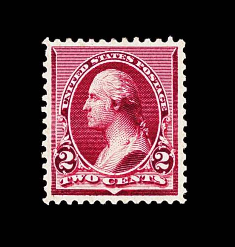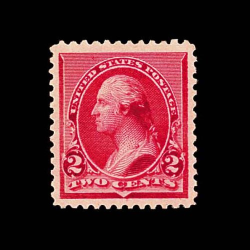 380 og 220 image#220, 2c Carmine, striking jumbo-margined mint single, with huge perfectly balanced margins all around, sumptuously rich color, o.g., l.h., extremely fine gem. (Image) 22.50