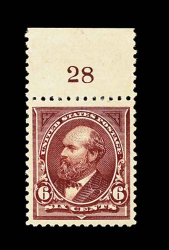 444 nh 256 image#256, 6c Dull brown, a marvelous top sheet-margin plate no. 28 single in a quality that is surprisingly challenging to locate, possessing flawless centering amid generously large margins, deep luxuriant color and impression on bright paper, o.g., n.h., an extremely fine gem; 1990 PF certificate. (Image) 275.00