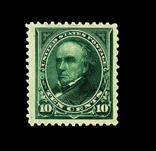 447 og 258 image#258, 10c Dark green, premium mint single, featuring enormously large margins which are rarely associated with this particular value, marvelously well centered, deep luxuriant color, o.g., very lightly hinged, extremely fine and striking; 1985 PF certificate. (Image) 250.00