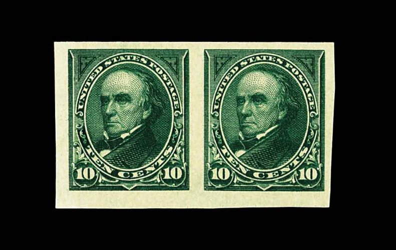 448 og 258a image#258a, 10c Green, imperforate, horizontal pair, impressively large margins all around, deep luxuriant color on immaculate paper, o.g., l.h., extremely fine; not often seen this choice; 1993 PF certificate. (Image) 650.00