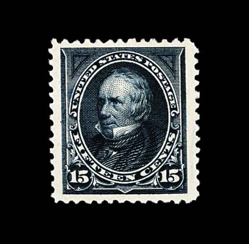 449 og 259 image#259, 15c Dark blue, an extraordinarily handsome and choice mint example, possessing outstanding centering amid huge margins, sumptuously rich color and impression on bright paper, o.g., lightly hinged, extremely fine; a most impressive stamp; 1991 PF certificate. (Image) 300.00