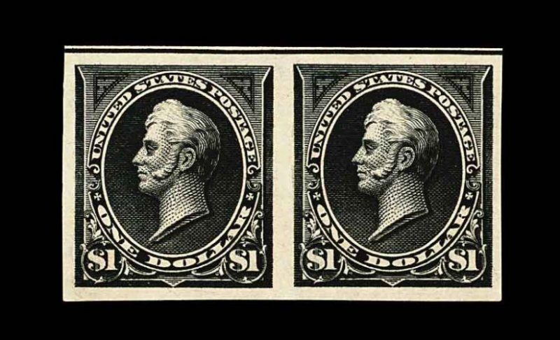 481 og 276b image#276b, $1.00 Black, Ty. I, imperforate, a remarkably choice horizontal pair of this imperforate rarity, marvelously fresh, with intense color and a razor-sharp impression on bright paper, large well balanced margins all around, pristine o.g. with just the barest trace of a hinge mark, extremely fine; a gem pair that is completely free of the faults which seem to affect so many of the Bureau issue imperforates; only 50 pairs can possibly exist; 1991 PF certificate for a block of four, this being the bottom pair. (Image) 2,000.00