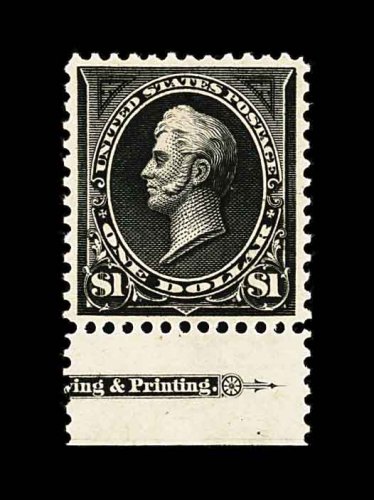 482 og 276A image#276A, $1.00 Black, Ty. II, an incredibly handsome bottom sheet-margin partial imprint single, marvelously well centered, with uncharacteristically large margins, deep luxuriant color and a sharp impression on bright paper, o.g., relatively lightly hinged, extremely fine; a rare stamp which is very seldom encountered this choice; 1986 PF certificate. (Image) 1,300.00