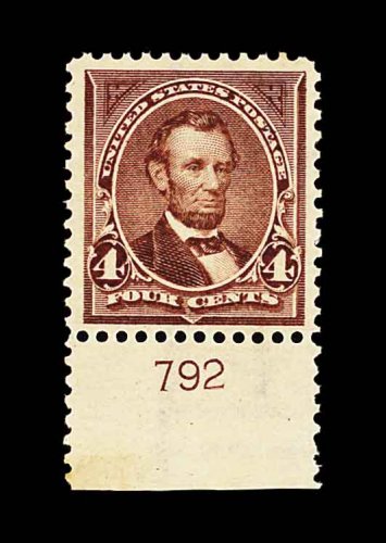 491 nh 280 image#280, 4c Rose brown, highly select bottom sheet-margin plate no. 792 single, marvelously well centered within exceptionally large margins, beautiful rich color, o.g., n.h., extremely fine; seldom seen this well margined and so choice; 1991 PF certificate. (Image) 55.00