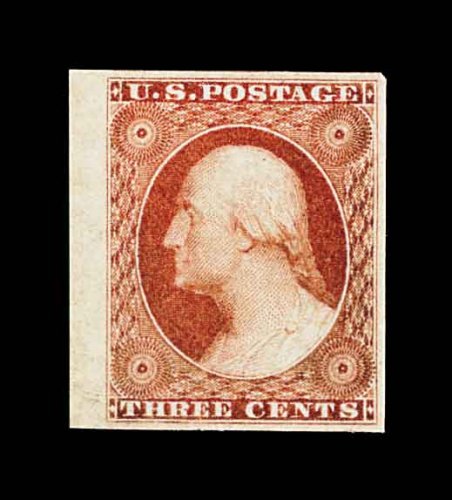 41 og 11 var. image#11 var., 3c Brownish carmine, a gem left sheet-margin mint example of this scarce and distinctive shade, with a sizable sheet margin in addition to lavishly large margins on the other three sides, deep luxuriant color and impression on bright paper, full o.g., barest trace of hinging (if at all), extremely fine; a stamp for the perfectionist; 1981 PF certificate specifically identifying this as the brownish carmine shade. (Image) 275.00