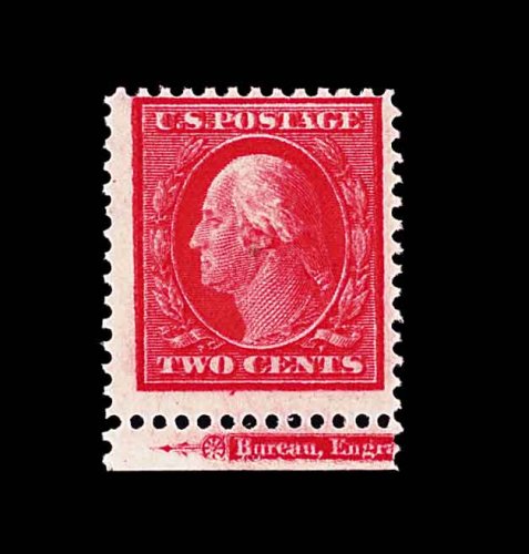 617 nh 375c image#375c, 2c Carmine, double impression, a striking bottom sheet-margin partial imprint single of this distinctive error, being the only example we have ever offered, with the doubling so pronounced that the stamp has few remaining distinct lines and creates an eye-arresting intense red color, centered a bit to top right, o.g., n.h., fine; a rare error which has just been recently assigned the new Scott designation of #375c, however it has yet to be valued by Scott; 1992 PF certificate for a block of four, this being the bottom right stamp. (Image) Est. 1,500-2,000