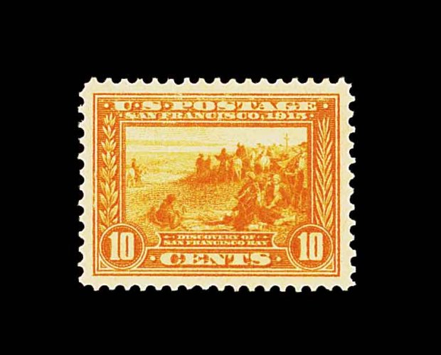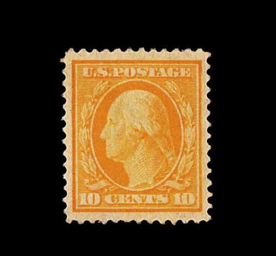 638 nh 400 image#400, 10c Panama-Pacific, Orange yellow, premium quality mint example which features flawless centering within extra-large margins, strikingly intense vivid color, o.g., n.h., an extremely fine gem; 1978 PF certificate. (Image) 225.00