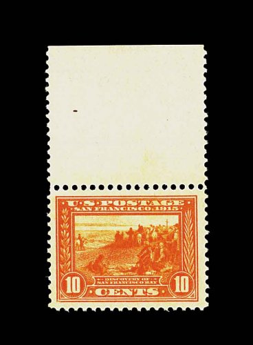 639 nh 400A image#400A, 10c Panama-Pacific, Orange, pristine top sheet-margin mint example, incredibly fresh, with eye-catching vibrant color and a crisp impression on bright paper, wonderfully well centered within large margins, o.g., n.h., extremely fine; 1979 PF certificate. (Image) 360.00