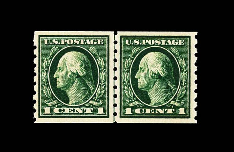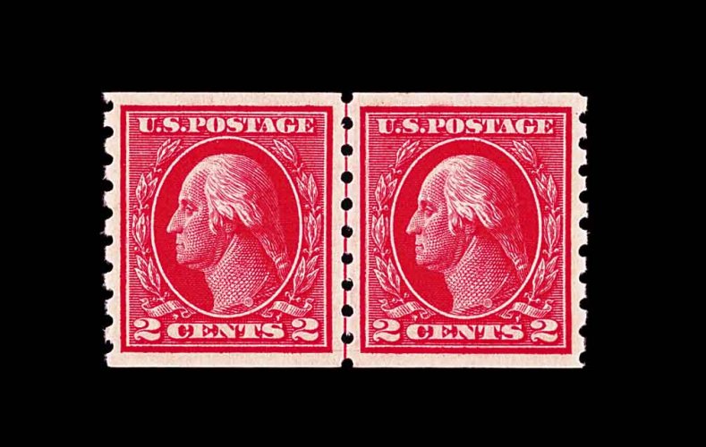 666 nh 413 image#413, 2c Carmine coil, Ty. I, perf. 8 1/2 vert., an essentially perfect guide line pair of this scarce coil, possessing flawless centering amid very large margins, even its guide line is perfectly positioned between the two stamps, fabulously fresh and intense color, deeply etched impression, immaculate o.g., n.h., superb; an incredibly choice line pair; 1980 PF certificate. (Image) 410.00