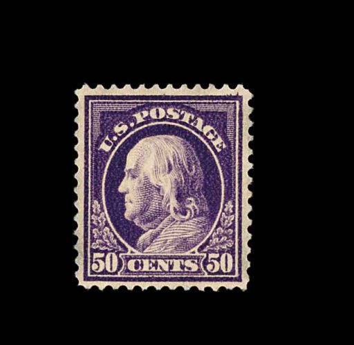 674 og 421 image#421, 50c Violet, single line watermark, essentially perfect centering within uncharacteristically large margins, strong rich color and impression on bright paper, pristine o.g., with just the barest trace of hinging (if at all), extremely fine; an especially handsome and choice mint single of this scarce stamp; 1980 PF and 2001 PSE certificate. (Image) 425.00