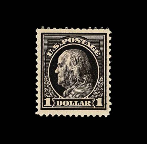 676 nh 423 image#423, $1.00 Violet brown, a most extraordinary mint example of this scarce high value, being in a quality matched by few others, featuring outstanding centering within extravagantly large margins which are most uncharacteristic, incredibly deep rich color and a well incised impression on bright paper, o.g., n.h., extremely fine; a gem never hinged 1912 One Dollar Franklin; 1978 PF and 2001 PSE certificates. (Image) 900.00