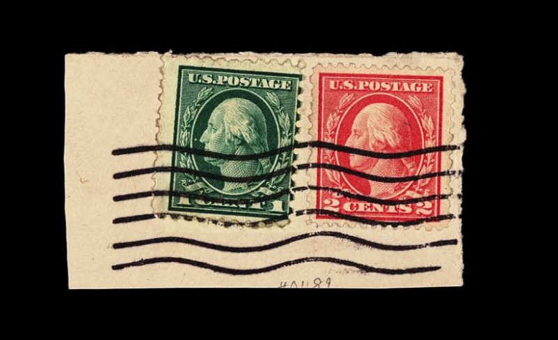 684 O 425d image#425d, Rose red, Ty. I, perforated 12 x 10, quite well centered, fresh color, tied to small piece along with a normal 1c value by wavy line machine postmark, piece with light crease which does not affect the rare Two Cent compound perforation error, which is very fine and quite choice; 1984 PF certificate. (Image) 3,500.00