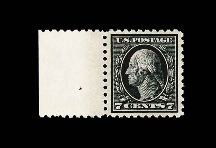 687 nh 430 image#430, 7c Black, highly select left sheet-margin mint single, marvelously fresh and crisp, prooflike color and impression, incredibly well centered within large margins, immaculate o.g., n.h., an extremely fine gem; a very elusive value to find this choice; 1980 PF certificate. (Image) 145.00