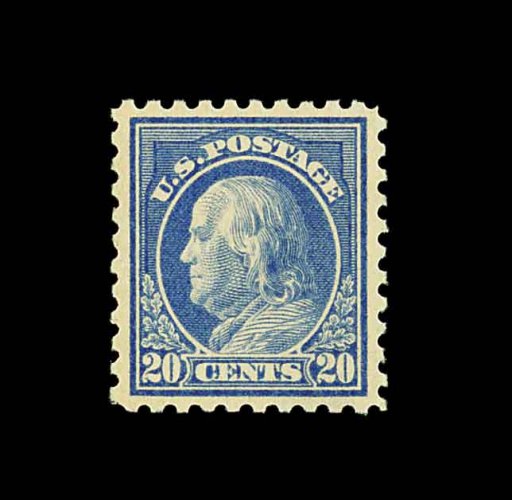 695 nh 438 image#438, 20c Ultramarine, an incredibly choice mint example, boasting flawless centering within extraordinarily large margins, strong fresh color and impression on bright white paper, uniformly intact perforations which is an unusual occurrence on the perf. 10 issues, o.g., n.h., extremely fine; a pristine gem for the finest collection; 1979 PF certificate. (Image) 360.00