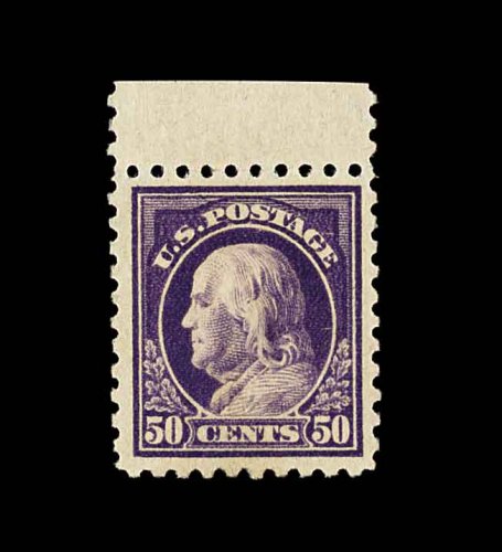 698 og 440 image#440, 50c Violet, an incredibly handsome top sheet-margin mint example that possesses tremendous eye appeal, featuring the most intense rich color we have ever seen on this value, plus its impression is deeply incised on remarkably bright paper, wonderfully centered as well, large margins, o.g., very lightly hinged, extremely fine; a premium example of this scarce high value; 1980 PF certificate. (Image) 550.00