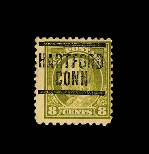 767 O 508c image#508c, 8c Olive bister, perforated 10 at bottom, well struck "Hartford/Conn" precancel, rich color, trivial corner perf. tip crease at top left, otherwise fine; an immensely rare perforation variety that is seldom offered at auction; clear 1960 PF certificate. (Image) 3,250.00