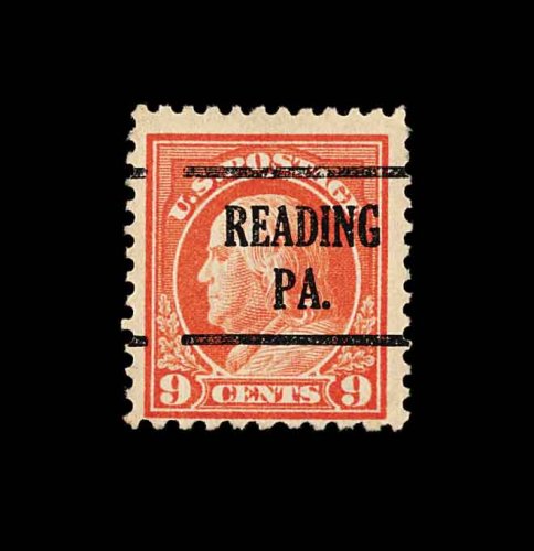 768 O 509a image#509a, 9c Salmon red, perforated 10 at bottom, crisp "Reading/Pa." precancel, strong luxuriant color, couple of small corner creases of little importance as this is only the second example of this perforation error we have ever seen, fine appearance; still quite undercataloged considering the only other example known to us realized $6,250.00, plus the 10% buyer's premium, in a "Rarities of the World" sale (Robert A. Siegel Auction Galleries, Inc., May 2001) despite having small flaws as well; 1999 PF certificate. (Image) 2,500.00