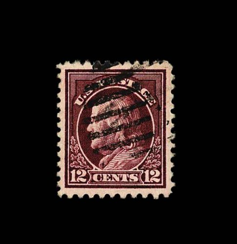 770 O 512b image#512b, 12c Claret brown, perforated 10 at bottom, a spectacular quality used example of this enormously rare stamp, possessing outstanding centering which virtually none of the perforation errors of this period can boast, with lavishly large and balanced margins, fully intact perforations, neat grid postmark, an extremely fine gem; of the mere eight recorded examples (four of which have precancels) this is clearly the finest example of this rarity in existence; 1995 PF certificate. (Image) 3,000.00