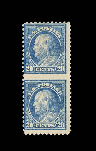 771 og 515b image#515b, 20c Light ultramarine, vertical pair, imperforate between, fresh color, a bit off center as are all known examples of this very rare error, o.g., fine; one of the few certified pairs that has no trace of the blind perforations found on some pairs purported to be genuine; 1996 PF certificate. (Image) 1,000.00