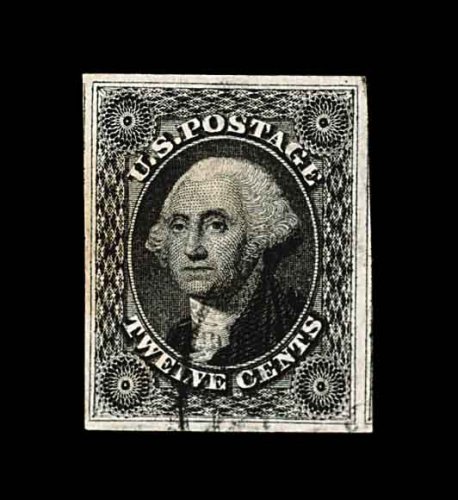 61 O 17 var. image#17 var., 12c Black on thin paper, triple transfer, position 5R1, uncharacteristically large margins all around, intense color and very lightly cancelled to allow the triple transfer variety to show clearly, slight toned spot at left of little importance on this rare triple transfer position, otherwise extremely fine; clear 1984 PF certificate and an updated 1995 PF certificate mentioning "slight toning"; ex-Koppersmith. (Image) 425.00