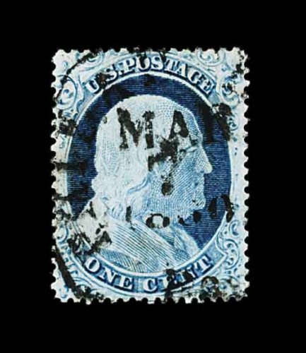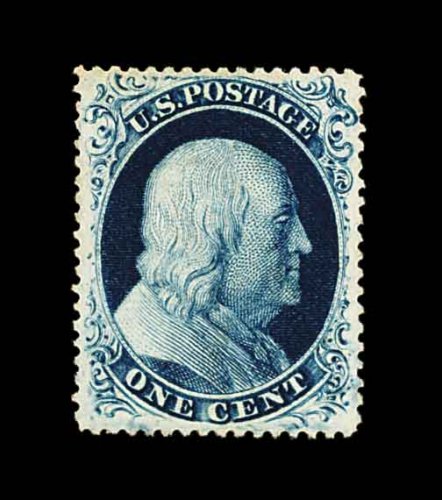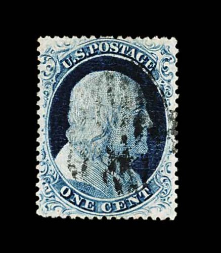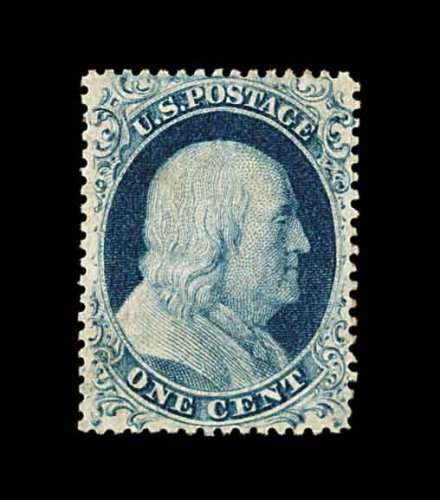 65 ng 21 image#21, 1c Blue, Ty. III, unused, flawlessly centered amid enormously large margins that are unlike any other we have ever seen on this very rare stamp, plus its color is incredibly intense and its impression is especially detailed on bright fresh paper, showing a clear break in the top label, and a huge break at bottom, unusually even and intact perforations for a perf. 15 issue, just the faintest trace of perf. tip toning at top that is truly unworthy of mention when one considers this stamp's overall attributes, extremely fine gem; easily the finest centered and margined unused/mint One Cent perforated Type III in existence; 1989 PF certificate; ex-"Angel" (where it realized $8,000.00, plus the 10% buyer's premium, Christie's October 29, 1991). (Image) 5,750.00