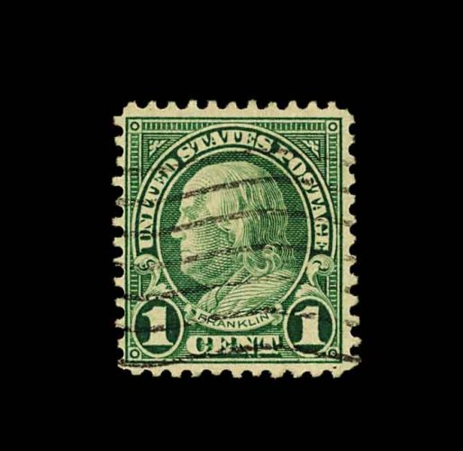 839 O 596 image#596, 1c Green, rotary press perforated 11, incredibly well centered for this challenging stamp, with its perforations well clear of the design all round, deep luxuriant color on bright paper, neat wavy line machine postmark rather than the more usual and less desirable Kansas City precancel, faint and unimportant corner crease at top right and the accompanying certificate describes a "tiny tear" which is barely perceptible and minute, in fact it scarcely qualifies as a minute break, still very fine and choice. This remarkable example of one of the greatest rarities in United States philately is one of only twelve recorded - all of which are used. There is no known unused copy. Only five are known to exist without the Kansas City precancel and, out of this select group, the example offered here from the Floyd collection is one of the two best centered examples. The realizations of the last two #596's to appear at auction give potential bidders a basis to formulate their bids. In the October 1998 sale of the Robert Zoellner collection there was a machine cancelled copy, whose centering was almost as nice as the Floyd example, having slightly irregular perforations at left, a corner perf. crease at top right and it sold for $88,000.00 (including premium). In a "Rarities of the World" sale (Robert A. Siegel Auction Galleries, Inc., May 2001) there was a sound precancelled copy, whose centering was just slightly inferior to the Floyd example, and it sold for $104,500.00 (including premium). In our opinion, the example offered here compares very favorably to each of the two which have sold in the past three years. Given the fact that only two examples of #596 have appeared on the auction block in that time clearly demonstrates the extreme rarity of the stamp and the infrequent opportunities which exist to potentially acquire one. Accompanied by a 1992 PF certificate. (Image) 70,000.00