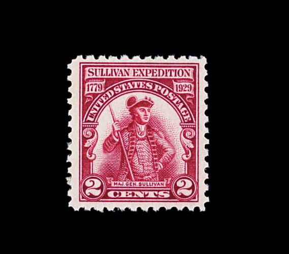 862 nh 657a image#657a, 2c Sullivan, lake shade, premium mint example of this very scarce and striking color error, being far better centered than typically seen, brilliantly fresh, strong luxuriant color, o.g., n.h., choice very fine; 1998 PF certificate. (Image) 900.00