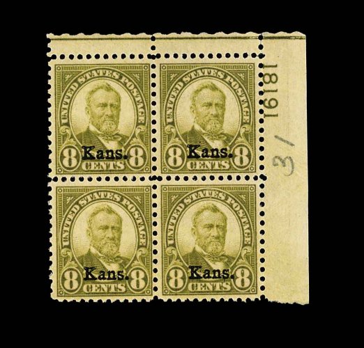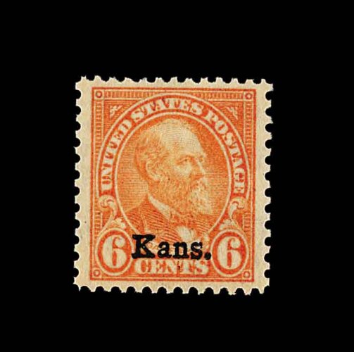 867 nh 662 image#662, 4c "Kans." ovpt., gem mint single that is perfectly centered within extra-large margins, deep rich color, o.g., n.h., extremely fine; 1999 PF certificate for a block of twelve from which this stamp was taken. (Image) 34.00