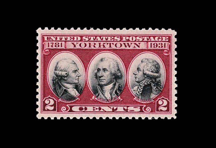 879 nh 703b image#703b, 2c Yorktown, dark lake and black error of color, choice mint example of this rare color error, well centered, o.g., n.h., very fine; 1991 PSE certificate. (Image) 600.00