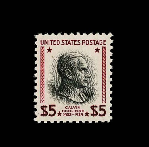 899 nh 834a image#834a, $5.00 Red brown and black error of color, an exceptionally handsome mint example of this very rare and popular error, brilliantly fresh, deep luxuriant colors, perfectly centered within large margins, o.g., n.h., natural gum skip line across very top of stamp, extremely fine; 1986 PF certificate. (Image) 3,250.00