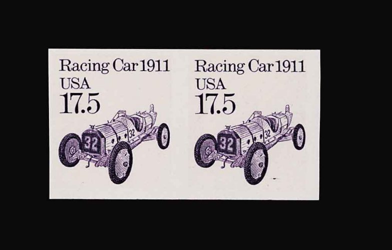 944 nh 2262b image#2262b, 17.5c Racing cars coil, imperforate, pair, large well balanced margins, bright and fresh, o.g., n.h., extremely fine; the rarest of all the imperforate Transportation coil errors; according to Datz, only 26 pairs and three plate strips of three exist. (Image) 2,250.00