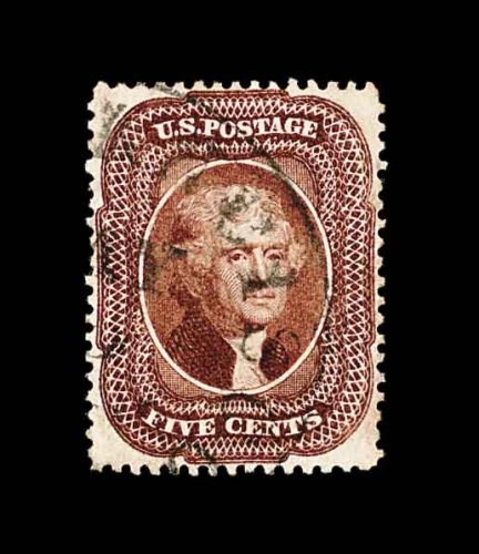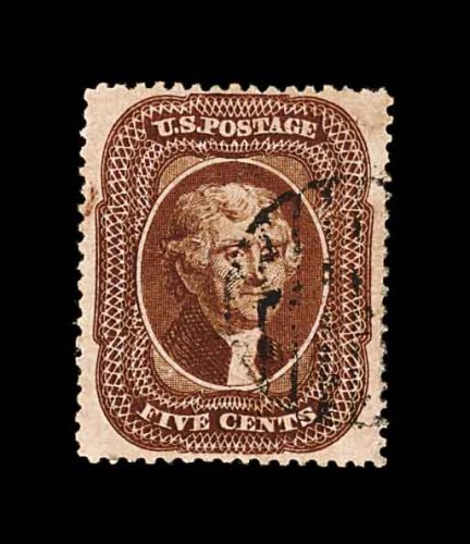 87 O 30A image#30A, 5c Brown, Ty. II, impressive used example possessing mathematically precise centering, uncharacteristically wide margins, sumptuously rich color and a deeply etched impression, neat light strike of grid postmark, extremely fine and quite choice; 1984 PF certificate. (Image) 275.00