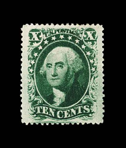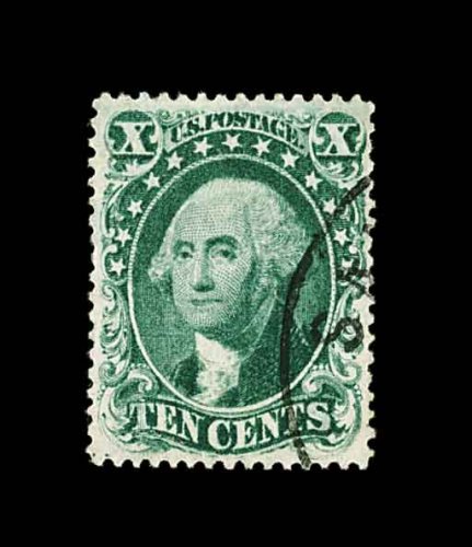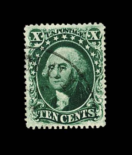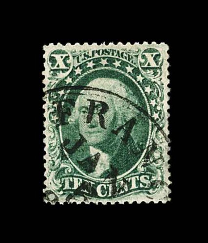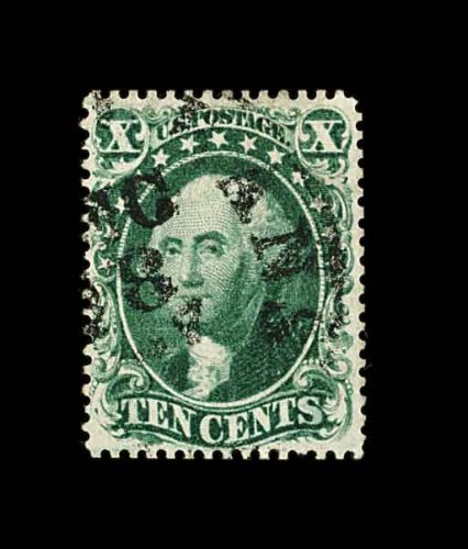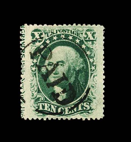 95 O 34 image#34, 10c Green, Ty. IV, position 55L, recut at bottom, flawlessly centered within huge margins for this issue, luxuriously rich color and a well defined impression showing the type characteristics well, there is even a stitch watermark showing, town c.d.s., extremely fine; a large-margined gem example of the rare and difficult 1858 Ten Cent Type IV; 1998 PF certificate. (Image) 2,400.00