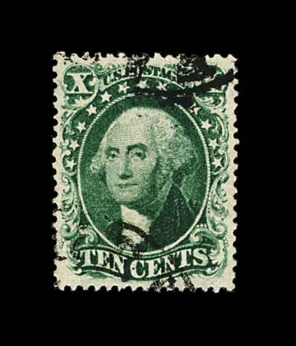 89 O 32 image#32, 10c Green, Ty. II, stunning used example which possesses the largest margins we have ever seen on this stamp, and being absolutely perfectly centered within them, deep rich color and a crisp impression, light face-free cancels at both top and bottom, extremely fine; a beautiful gem for the finest collection; 1988 PF certificate; ex-Welling. (Image) 275.00