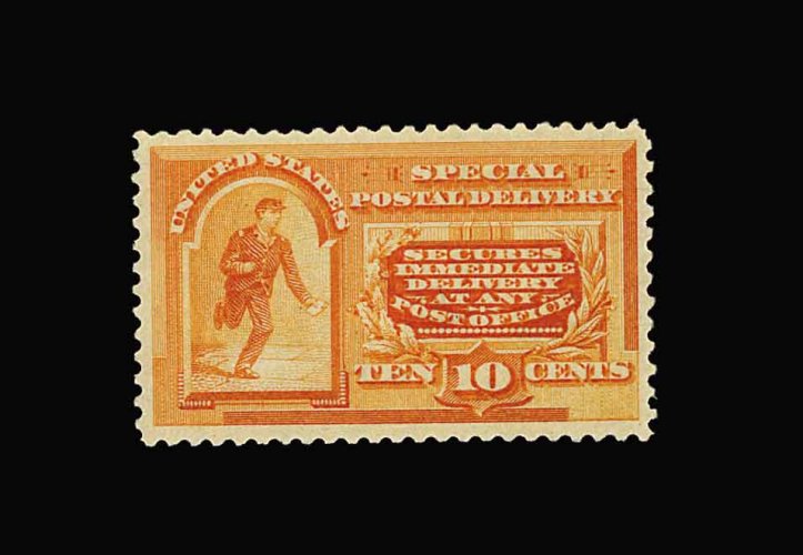 1038 nh E3 image#E3, 10c Orange, brilliant "post office" fresh mint single, gorgeous vibrant color and impression on bright paper, outstanding centering within very large margins, o.g., n.h., extremely fine gem; 1981 PF certificate. (Image) 350.00