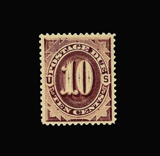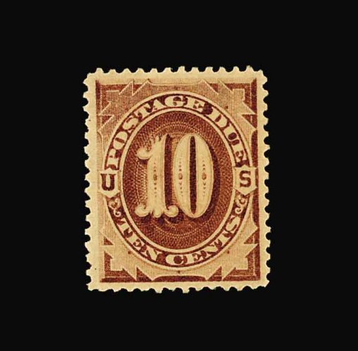 1079 nh J19 image#J19, 10c Red brown, virtually perfectly centered amid large margins, sumptuously rich color and impression, pristine o.g., n.h., extremely fine; an exceptionally scarce and desirable stamp in this gem never hinged condition; 1994 PSE certificate. (Image) for hinged 475.00